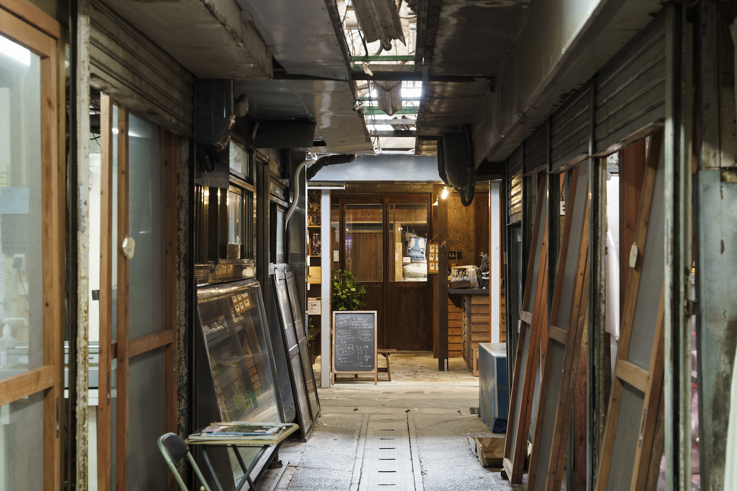 改修にあたっては、沖縄らしさと栄町市場が持つノスタルジックな雰囲気をできるだけ残すことを大切にし、手を加える部分は最小限に。不動産から引き渡しを受けた当初、コンクリートの梁は爆裂を隠すように板で覆われていましたが、その板をあえて撤去し、時間の経過や建物の歴史をそのままデザインの一部として取り込むよう考えた。